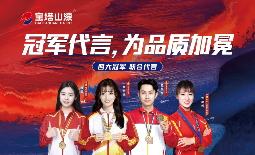 以拼搏淬炼卓越品质 用坚守点亮行业灯塔 宝塔山建涂携手 四大体育冠军 共同开启品牌发展全新征程 提起冠军,脑海中总会浮现出赛场上那些奋勇拼搏的身影。他们用汗水浇灌梦想,以顽强的毅力和精湛的技艺,一次次突破人类极限,站上荣耀之巅。 女子足球冠军 崔雨涵 而这份拼搏精神,与宝塔山建涂深耕建筑涂料市场多年始终秉持着对品质的执着追求的理念,竟有着惊人的契合。 啦啦操冠军 程晨 从原材料的严苛筛选,到核心技术的不断创新,再到生产线上的精细化操作,最后再到成品的质量检测,每一个环节都凝聚着宝塔山漆人的匠心坚守。 正是这份坚守让宝塔山建涂在市场中收获了良好口碑,成为万千消费者信赖的选择,也让品牌在行业中树立起了品质标杆。 世界大运会体操冠军 刘南希 此次宝塔山建涂与冠军的合作,堪称一场 “天作之合”。冠军的强大影响力如同强劲引擎,推动宝塔山建涂的品牌知名度迈向新高度,让更多人了解这个始终以品质说话的优秀涂料品牌。 宝塔山建涂则借助冠军的卓越形象,向市场传递出“追求卓越 永不止步”的品牌价值观,让消费者深切感受到品牌对品质的承诺与坚持。 蹦床冠军 戴昊男 在冠军的品质加持下, 我们必将全心全力投入研发与生产, 不断推出更多优质产品, 始终以冠军标准严格要求, 为每一个涂装项目提供坚实保障, 助力打造更加美好的居住与生活环境。